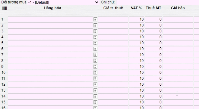 Bước 3: Điền thông tin giá mới của từng mặt hàng